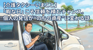 - 【介護タクシー】「暇な日」こそ信頼を積むチャンス。個人の発信が“50年後の資産”に変わる話
