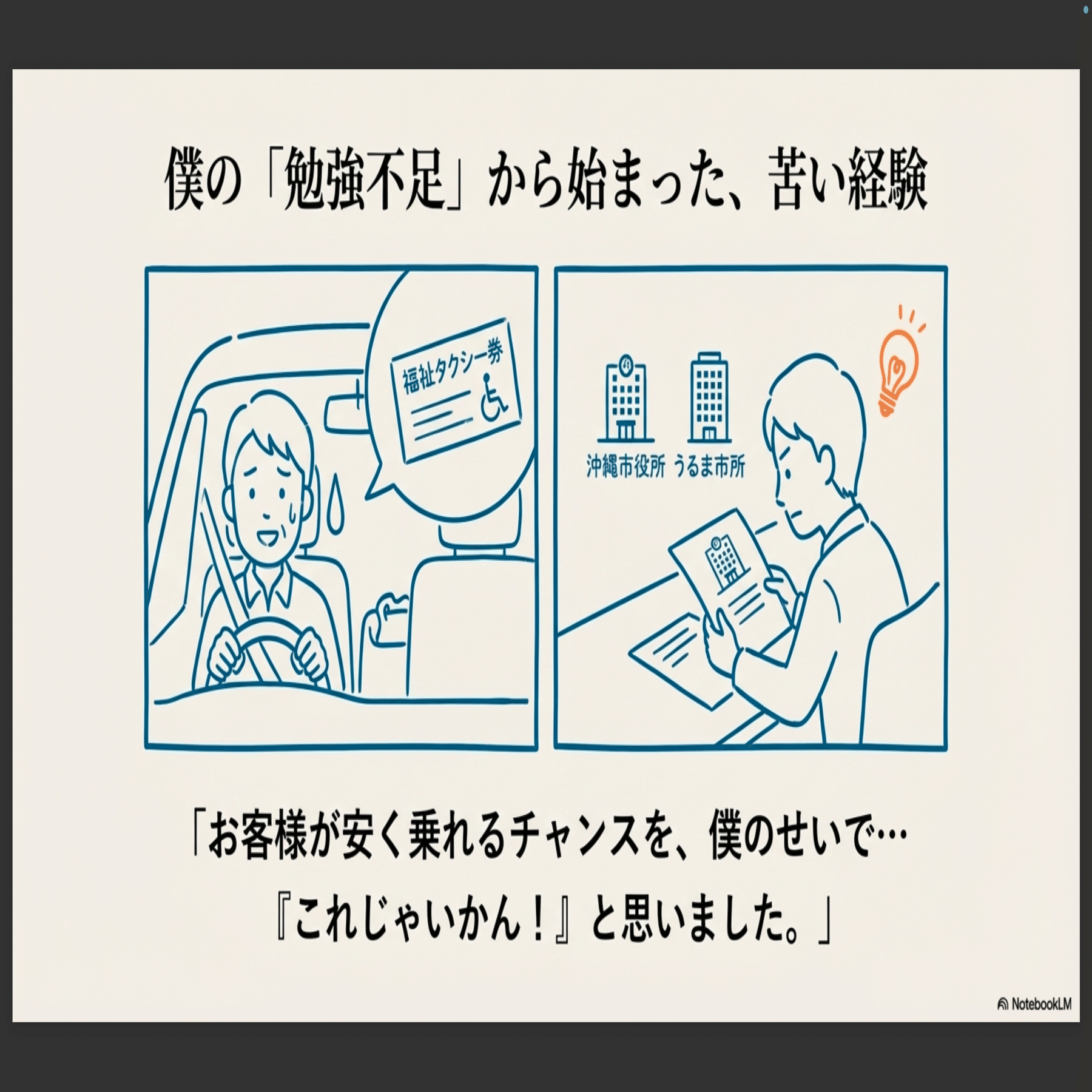 ある時、お客様から「福祉タクシー券って使える?」と聞かれ、「えっ、なんですかそれ?」と聞き返してしまったんです(汗)。せっかくお客様が安く乗れるチャンスだったのに、僕の勉強不足でご不便をおかけしてしまいました。
