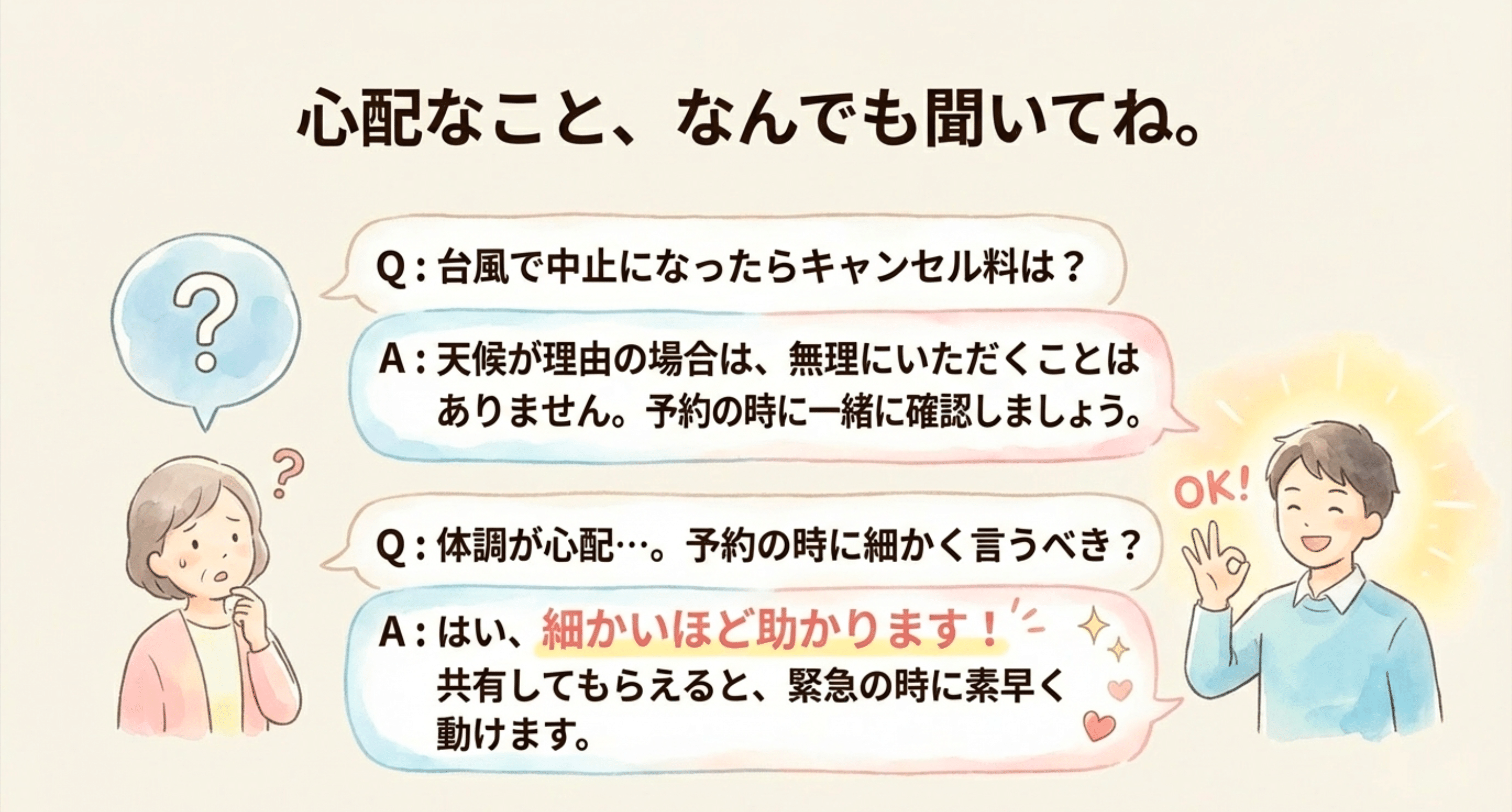 Q3:体調急変が心配。予約時に細かく言うべき?
