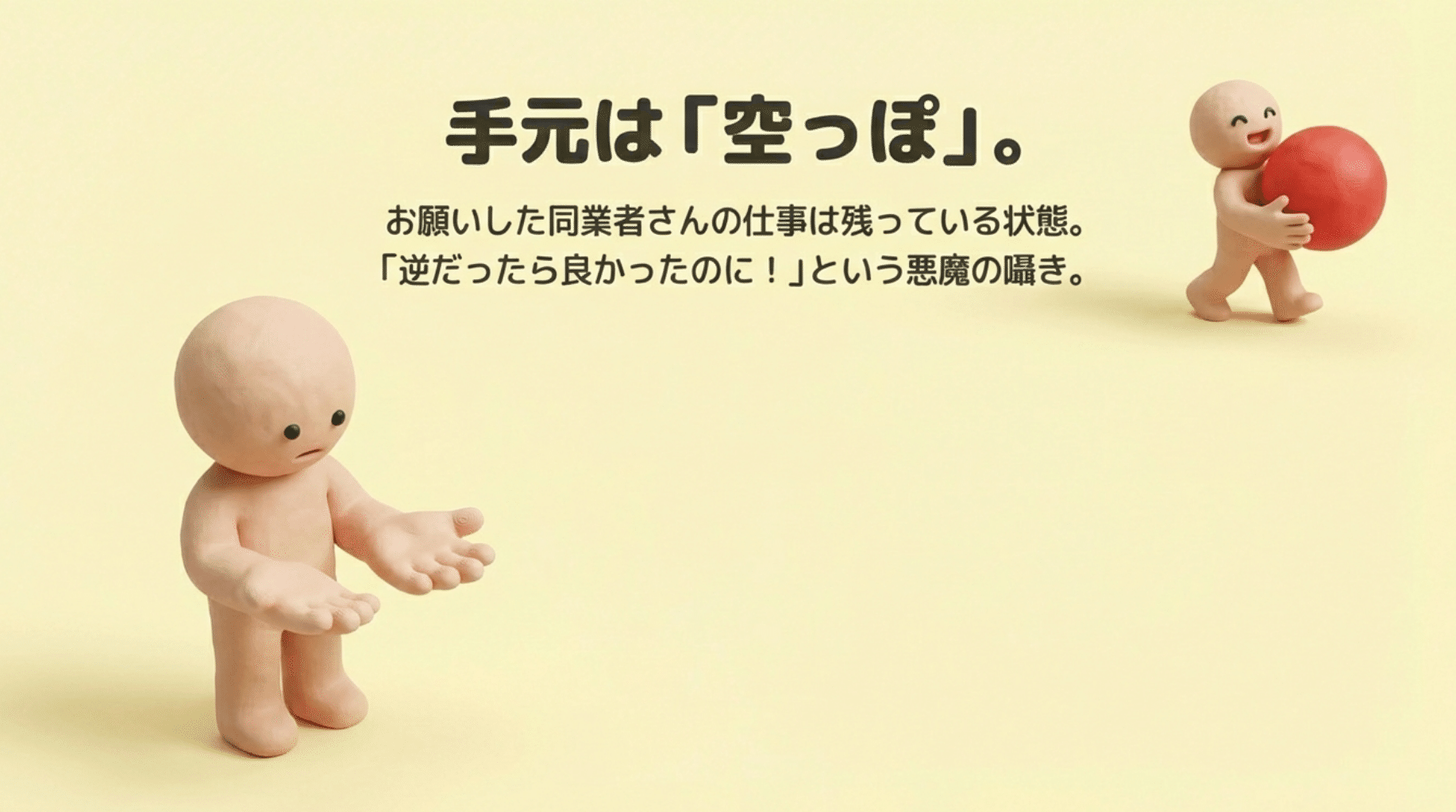 その結果、どうなったか。 私の手元は「空っぽ」になり、お願いした同業者さんの仕事が残っている状態になりました。