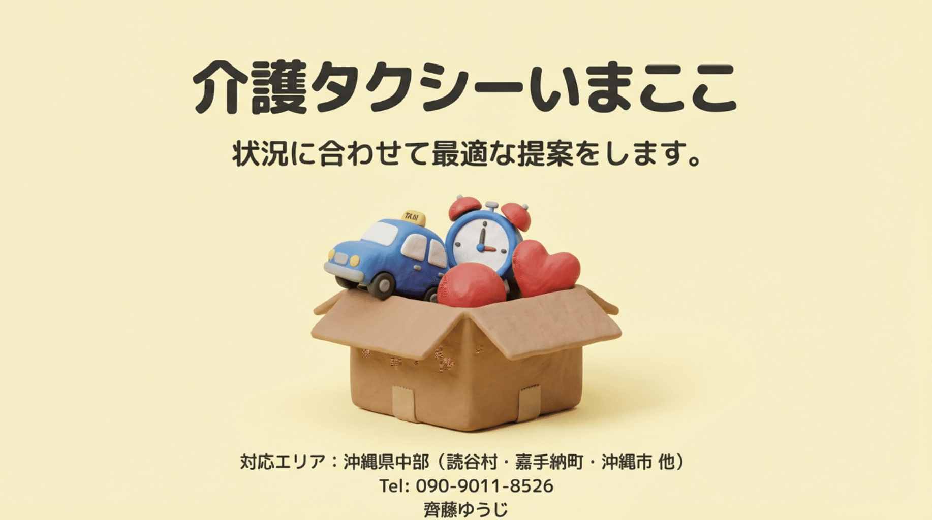 こんにちは。沖縄県読谷村・中部エリアで「介護タクシーいまここ」を運営している齊藤です。
